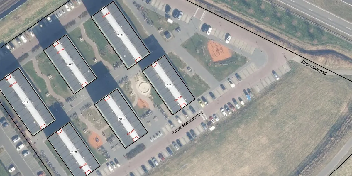 Het perceel waarop Pasar Malamstraat 704 staat heeft een oppervlakte van 475 m². Dit is een groot perceel. De perceeloppervlakte wordt geregistreerd door het Kadaster. Gedetailleerde informatie over de maten van dit perceel kunt u vinden in het rapport Kadastrale kaart met maatvoering van Pasar Malamstraat 704.