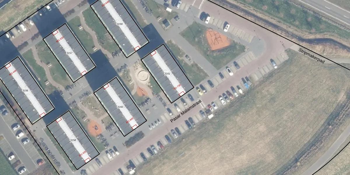 Het perceel waarop Pasar Malamstraat 706 staat heeft een oppervlakte van 475 m². Dit is een groot perceel. De perceeloppervlakte wordt geregistreerd door het Kadaster. Gedetailleerde informatie over de maten van dit perceel kunt u vinden in het rapport Kadastrale kaart met maatvoering van Pasar Malamstraat 706.