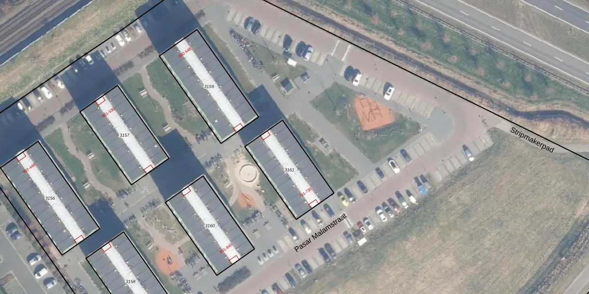 Het perceel waarop Pasar Malamstraat 722 staat heeft een oppervlakte van 475 m². Dit is een groot perceel. De perceeloppervlakte wordt geregistreerd door het Kadaster. Gedetailleerde informatie over de maten van dit perceel kunt u vinden in het rapport Kadastrale kaart met maatvoering van Pasar Malamstraat 722.