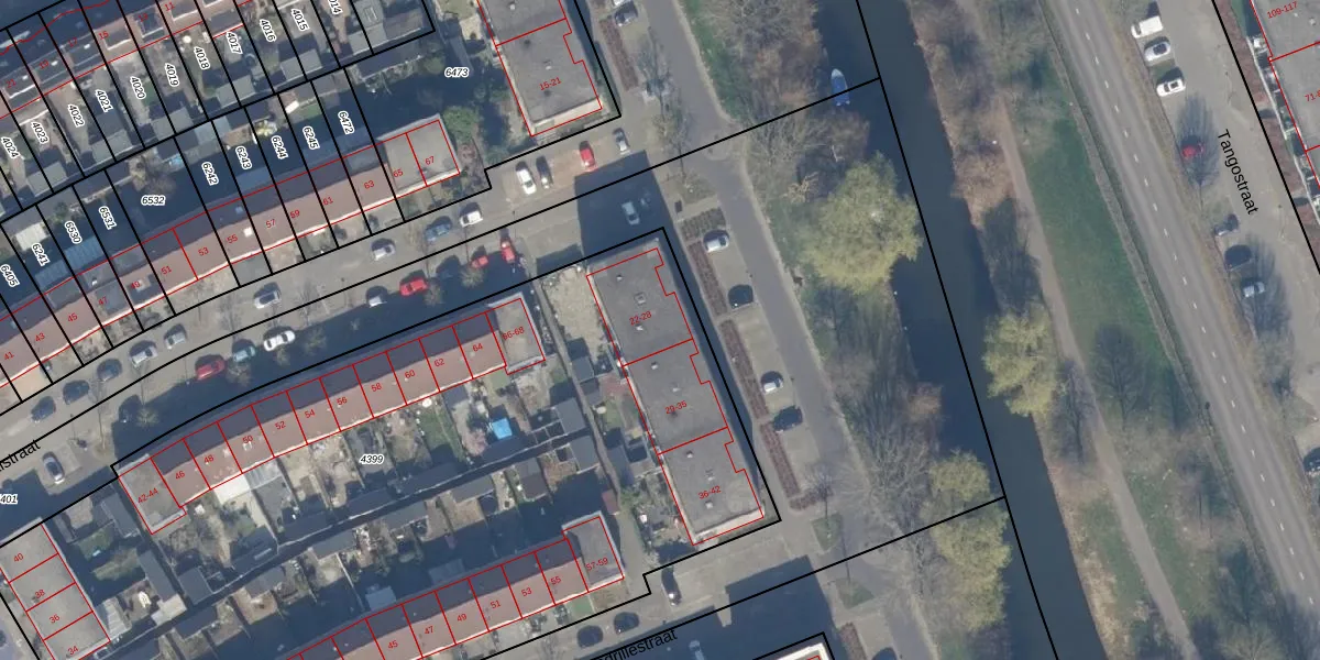 Het adres is gelegen op perceel 4399 in de sectie U en de kadastrale gemeente Almere. De kadastrale aanduiding is aldus AMR04-U-4399. Het perceel is met 5363 m² relatief groot. Het gemiddelde ligt in de kadastrale gemeente Almere op 3328,15 m². De grootste perceeloppervlakte in de kadastrale gemeente is 32,12 km². De kleinste oppervlakte bedraagt 0 m². Er zijn 54 adressen aanwezig op het perceel. De huidige grenzen van het perceel zijn digitaal in de Basisregistratie Kadaster (BRK) geregistreerd op 12-02-1998.