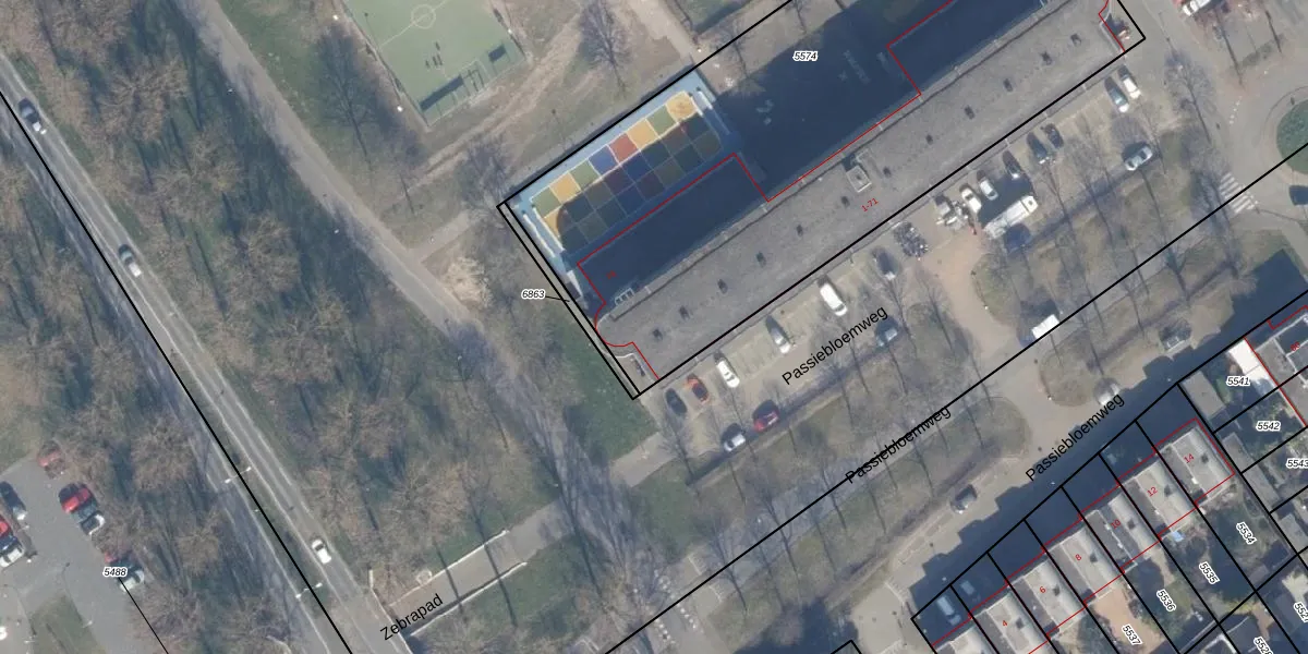 Passiebloemweg 25 is gelegen op kadastraal perceel AMR04N5574. Deze kadastrale aanduiding is uniek en wordt gebruikt door het Kadaster om eigendomsrechten en andere zakelijke rechten vast te leggen. Het perceel maakt onderdeel uit van de kadastrale gemeente Almere.