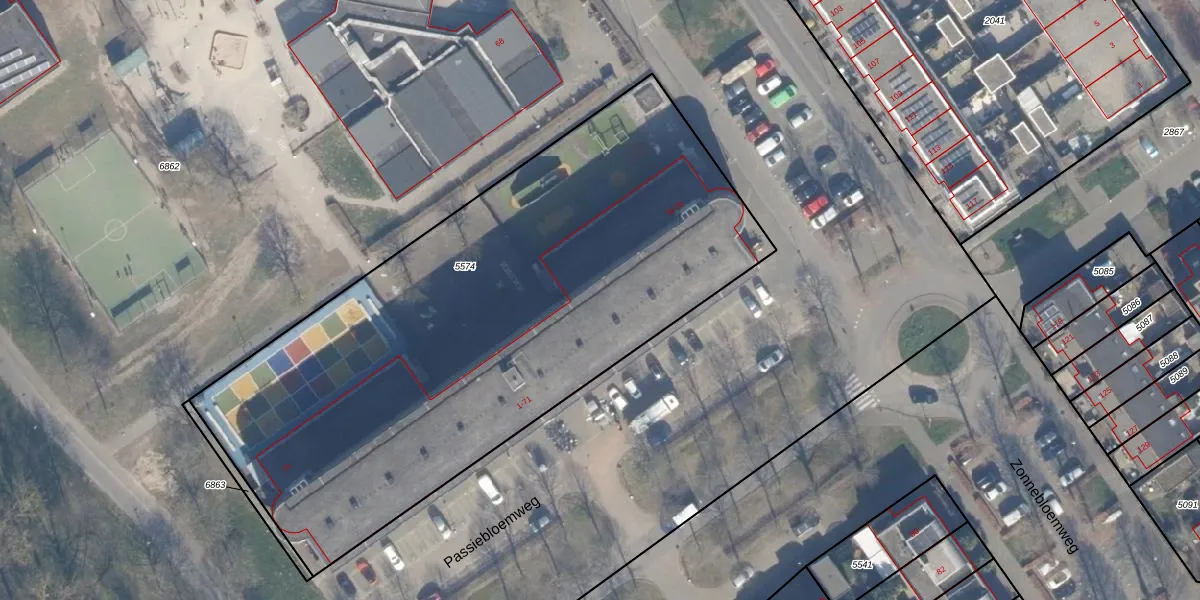Passiebloemweg 65 is gelegen op kadastraal perceel AMR04N5574. Deze kadastrale aanduiding is uniek en wordt gebruikt door het Kadaster om eigendomsrechten en andere zakelijke rechten vast te leggen. Het perceel maakt onderdeel uit van de kadastrale gemeente Almere.