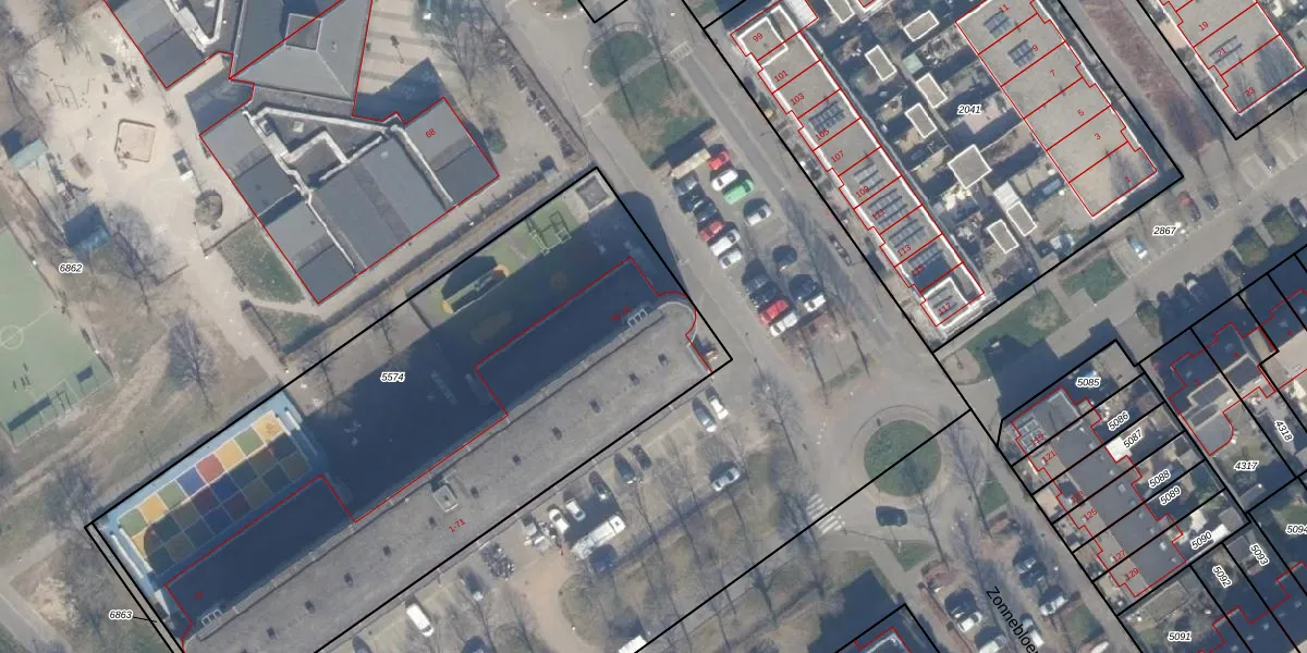 Het adres ligt op het perceel AMR04-N-5574, dat zich in de kadastrale gemeente Almere bevindt. De oppervlakte van het perceel is 3401 m². Dat is groter dan gemiddeld in Almere, waar de gemiddelde perceeloppervlakte op 3328,15 m² ligt. Het kleinste perceel in de kadastrale gemeente is 0 m² groot. De grootste perceeloppervlakte is 32,12 km². Op het perceel zijn 43 adressen aanwezig. In de Basisregistratie Kadaster (BRK) werden de grenzen van het perceel geregistreerd op 01-02-2024.