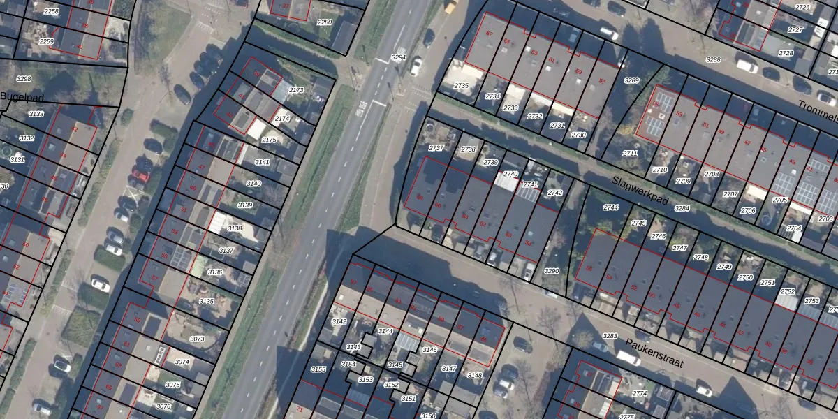 Het perceel waarop Paukenstraat 68 staat heeft een oppervlakte van 226 m². Dit is een middelgroot perceel. De perceeloppervlakte wordt geregistreerd door het Kadaster. Gedetailleerde informatie over de maten van dit perceel kunt u vinden in het rapport Kadastrale kaart met maatvoering van Paukenstraat 68.