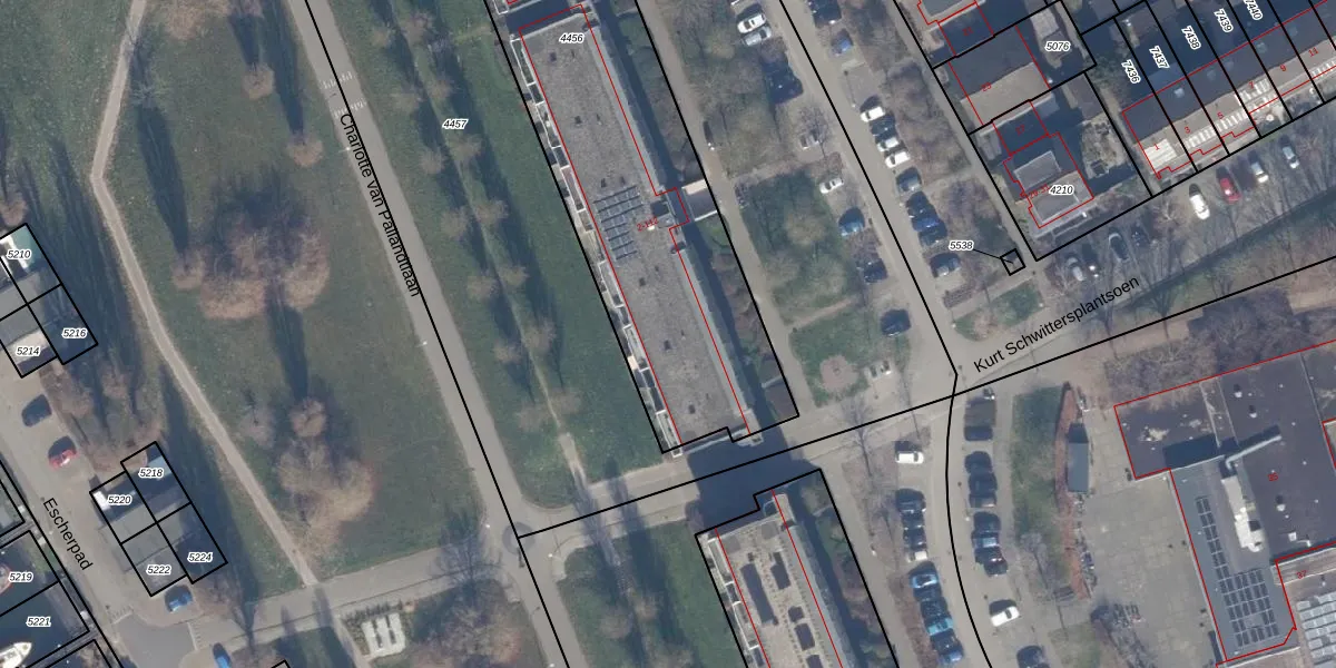 Het perceel waarop het adres ligt is AMR04-P-4456. De afkorting 'AMR04' staat voor kadastrale gemeente Almere. De gemiddelde perceelgrootte in Almere is 3327,75 m². Dit perceel is kleiner: de perceeloppervlakte bedraagt 2606 m². De grootste perceeloppervlakte in de kadastrale gemeente is 32,12 km². De kleinste oppervlakte bedraagt 0 m². Op het perceel zijn 59 adressen aanwezig. De laatste wijziging in het de Basisregistratie Kadaster (BRK) was op 24-05-2002.