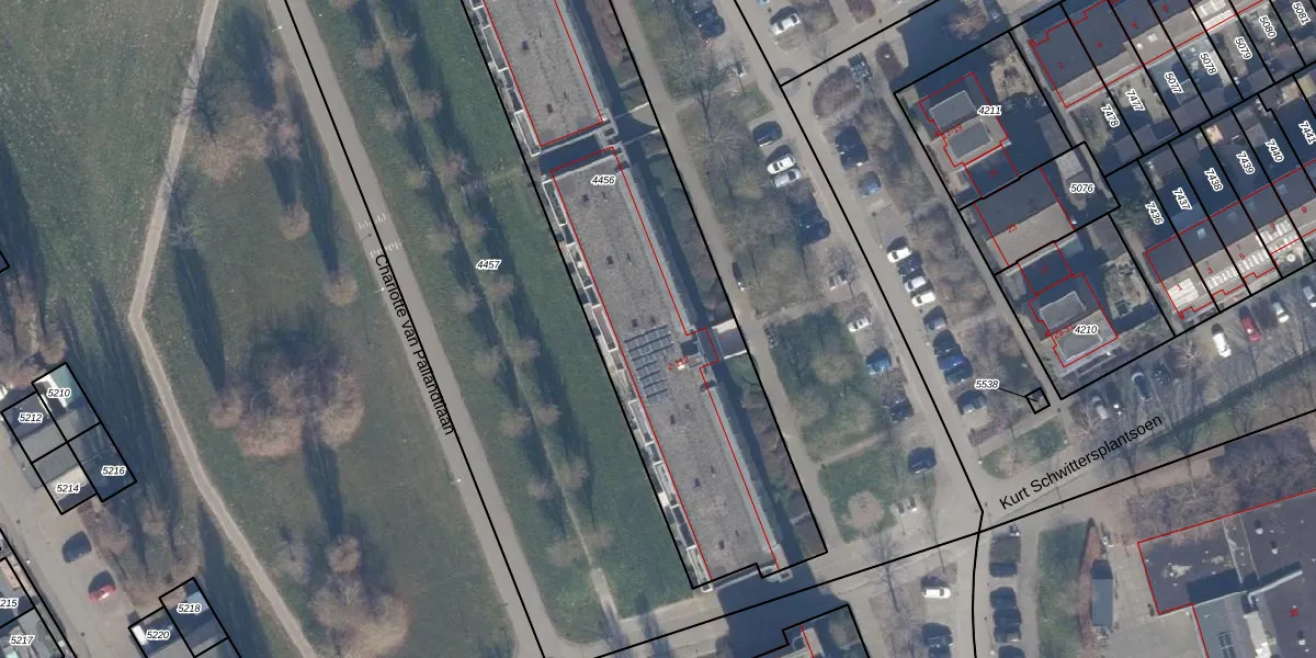 Het perceel waarop het adres ligt is AMR04-P-4456. De afkorting 'AMR04' staat voor kadastrale gemeente Almere. De gemiddelde perceelgrootte in Almere is 3328,15 m². Dit perceel is kleiner: de perceeloppervlakte bedraagt 2606 m². De grootste perceeloppervlakte in de kadastrale gemeente is 32,12 km². De kleinste oppervlakte bedraagt 0 m². Op het perceel liggen in totaal 59 adressen. In de Basisregistratie Kadaster (BRK) werden de grenzen van het perceel geregistreerd op 24-05-2002.