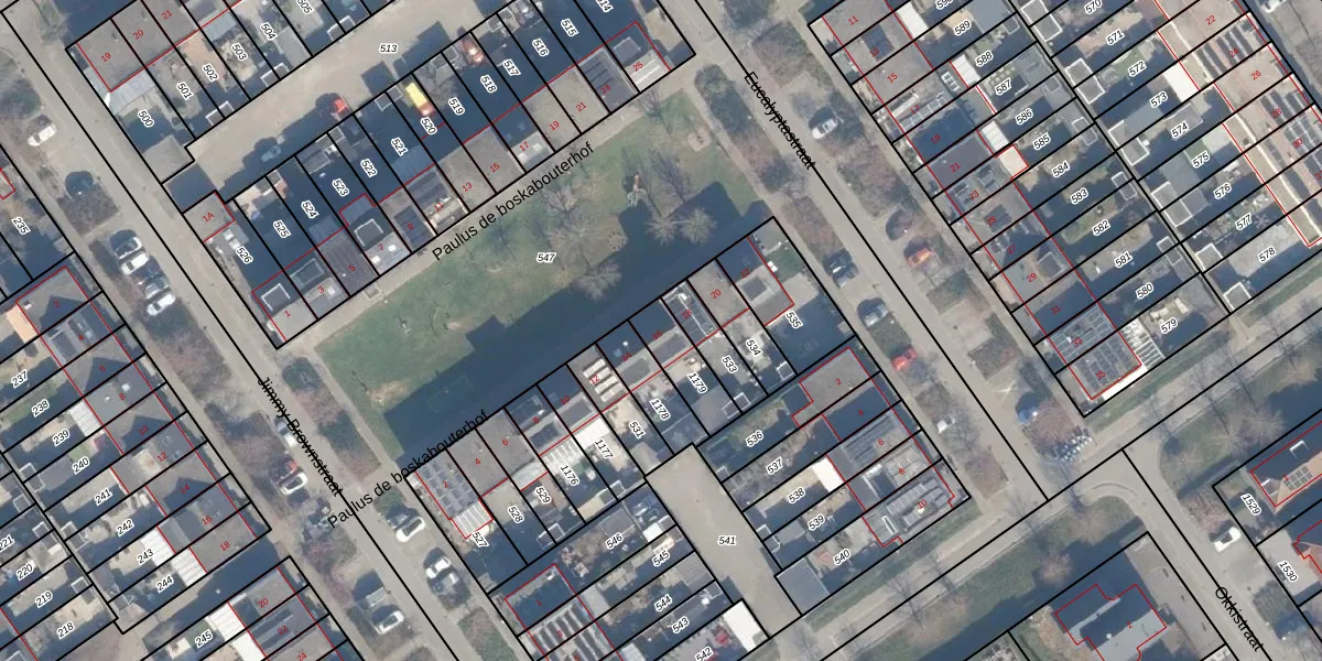Paulus de boskabouterhof 16 is gelegen op kadastraal perceel AMR04R1179. Deze kadastrale aanduiding is uniek en wordt gebruikt door het Kadaster om eigendomsrechten en andere zakelijke rechten vast te leggen. Het perceel maakt onderdeel uit van de kadastrale gemeente Almere.