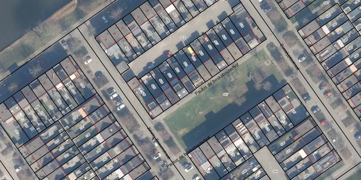 Gebruik de zoekbalk of klik op een perceel voor informatie over de adressen binnen dit perceel.