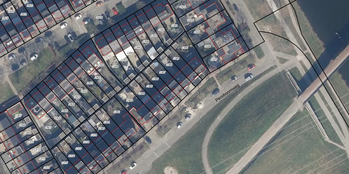 Het perceel waarop Pereboomweg 111 staat heeft een oppervlakte van 159 m². Dit is een middelgroot perceel. De perceeloppervlakte wordt geregistreerd door het Kadaster. Gedetailleerde informatie over de maten van dit perceel kunt u vinden in het rapport Kadastrale kaart met maatvoering van Pereboomweg 111.