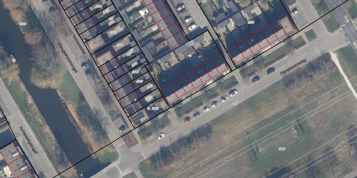 Het perceel waarop Pereboomweg 23 staat heeft een oppervlakte van 2383 m². Dit is een zeer groot perceel. De perceeloppervlakte wordt geregistreerd door het Kadaster. Gedetailleerde informatie over de maten van dit perceel kunt u vinden in het rapport Kadastrale kaart met maatvoering van Pereboomweg 23.