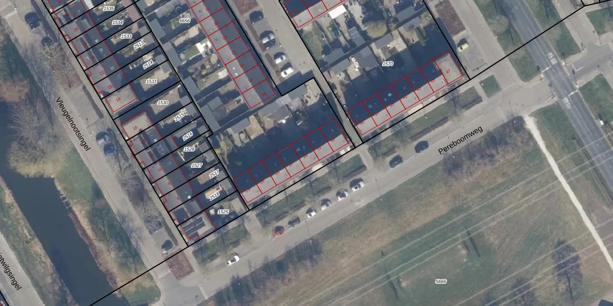 Het perceel waarop Pereboomweg 29 staat heeft een oppervlakte van 2383 m². Dit is een zeer groot perceel. De perceeloppervlakte wordt geregistreerd door het Kadaster. Gedetailleerde informatie over de maten van dit perceel kunt u vinden in het rapport Kadastrale kaart met maatvoering van Pereboomweg 29.