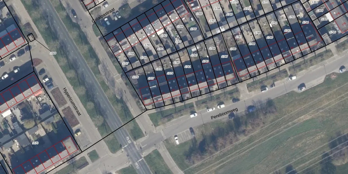 Het perceel waarop Pereboomweg 55 staat heeft een oppervlakte van 150 m². Dit is een middelgroot perceel. De perceeloppervlakte wordt geregistreerd door het Kadaster. Gedetailleerde informatie over de maten van dit perceel kunt u vinden in het rapport Kadastrale kaart met maatvoering van Pereboomweg 55.