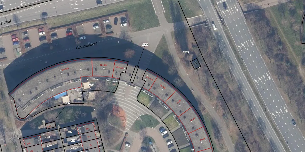 Het perceel waarop het adres ligt is AMR04-U-2764. De afkorting 'AMR04' staat voor kadastrale gemeente Almere. De gemiddelde perceelgrootte in Almere is 3327,75 m². Dit perceel is kleiner: de perceeloppervlakte bedraagt 2313 m². Het kleinste perceel in de kadastrale gemeente is 0 m² groot. De grootste perceeloppervlakte is 32,12 km². Op het perceel liggen in totaal 55 adressen. De huidige grenzen van het perceel zijn digitaal in de Basisregistratie Kadaster (BRK) geregistreerd op 20-08-1997.