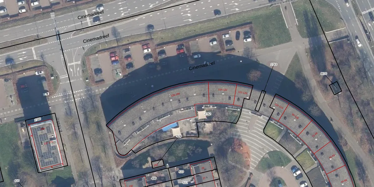 Het perceel waarop het adres ligt is AMR04-U-2762. De afkorting 'AMR04' staat voor kadastrale gemeente Almere. De gemiddelde perceelgrootte in Almere is 3327,75 m². Dit perceel is kleiner: de perceeloppervlakte bedraagt 1774 m². Het kleinste perceel in de kadastrale gemeente is 0 m² groot. De grootste perceeloppervlakte is 32,12 km². Op het perceel zijn 38 adressen aanwezig. De huidige grenzen van het perceel zijn digitaal in de Basisregistratie Kadaster (BRK) geregistreerd op 20-08-1997.