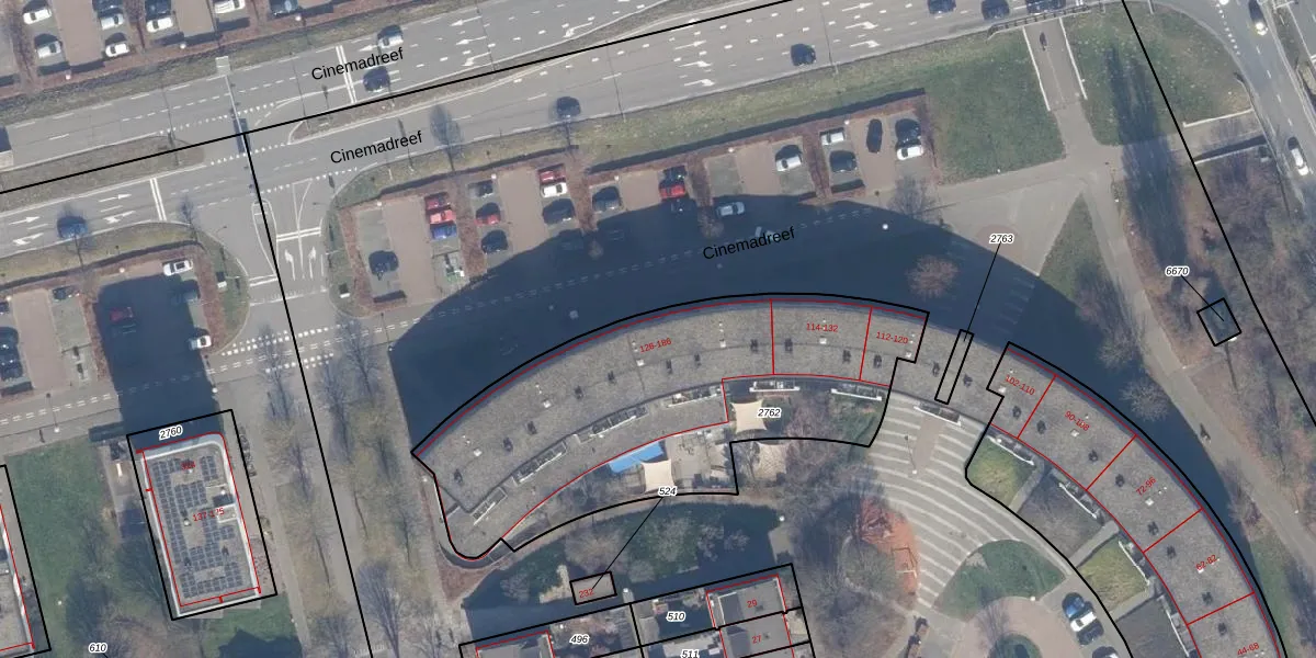 Het perceel waarop het adres ligt is AMR04-U-2762. De afkorting 'AMR04' staat voor kadastrale gemeente Almere. De gemiddelde perceelgrootte in Almere is 3327,75 m². Dit perceel is kleiner: de perceeloppervlakte bedraagt 1774 m². Het kleinste perceel in de kadastrale gemeente is 0 m² groot. De grootste perceeloppervlakte is 32,12 km². Op het perceel zijn 38 adressen aanwezig. De huidige grenzen van het perceel zijn digitaal in de Basisregistratie Kadaster (BRK) geregistreerd op 20-08-1997.