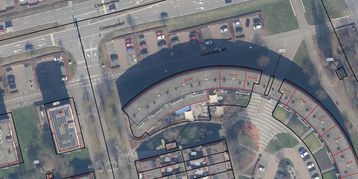 Het perceel waarop het adres ligt is AMR04-U-2762. De afkorting 'AMR04' staat voor kadastrale gemeente Almere. De gemiddelde perceelgrootte in Almere is 3327,75 m². Dit perceel is kleiner: de perceeloppervlakte bedraagt 1774 m². Het kleinste perceel in de kadastrale gemeente is 0 m² groot. De grootste perceeloppervlakte is 32,12 km². Op het perceel zijn 38 adressen aanwezig. De huidige grenzen van het perceel zijn digitaal in de Basisregistratie Kadaster (BRK) geregistreerd op 20-08-1997.
