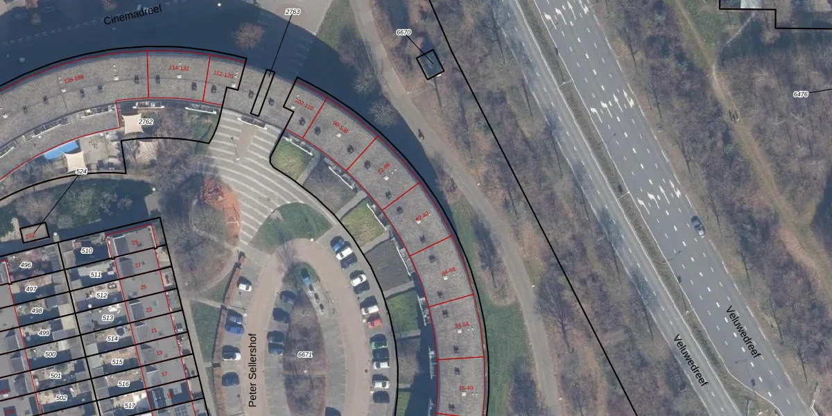 Het perceel waarop het adres ligt is AMR04-U-2764. De afkorting 'AMR04' staat voor kadastrale gemeente Almere. De gemiddelde perceelgrootte in Almere is 3327,75 m². Dit perceel is kleiner: de perceeloppervlakte bedraagt 2313 m². Het kleinste perceel in de kadastrale gemeente is 0 m² groot. De grootste perceeloppervlakte is 32,12 km². Er zijn 55 adressen aanwezig op het perceel. In de Basisregistratie Kadaster (BRK) werden de grenzen van het perceel geregistreerd op 20-08-1997.