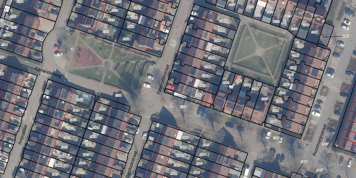Het perceel waarop Peterseliestraat 2 staat heeft een oppervlakte van 160 m². Dit is een middelgroot perceel. De perceeloppervlakte wordt geregistreerd door het Kadaster. Gedetailleerde informatie over de maten van dit perceel kunt u vinden in het rapport Kadastrale kaart met maatvoering van Peterseliestraat 2.