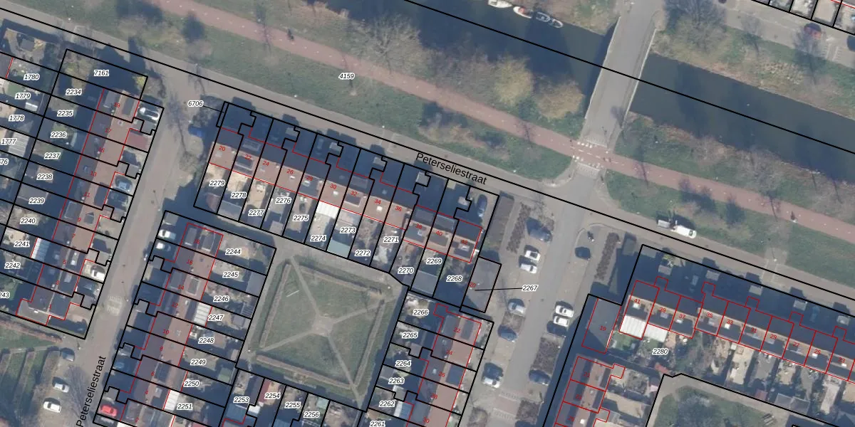 Het perceel waarop Peterseliestraat 38 staat heeft een oppervlakte van 148 m². Dit is een middelgroot perceel. De perceeloppervlakte wordt geregistreerd door het Kadaster. Gedetailleerde informatie over de maten van dit perceel kunt u vinden in het rapport Kadastrale kaart met maatvoering van Peterseliestraat 38.