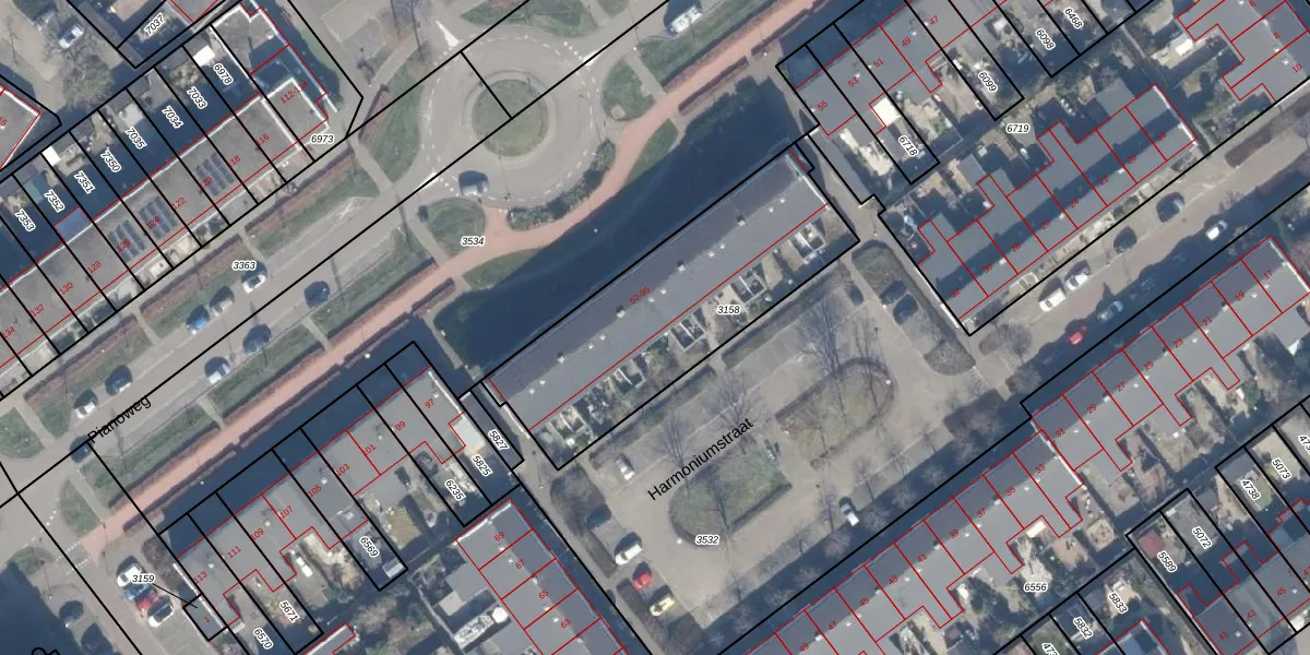 Pianoweg 67 is gelegen op kadastraal perceel AMR04K3158. Deze kadastrale aanduiding is uniek en wordt gebruikt door het Kadaster om eigendomsrechten en andere zakelijke rechten vast te leggen. Het perceel maakt onderdeel uit van de kadastrale gemeente Almere.