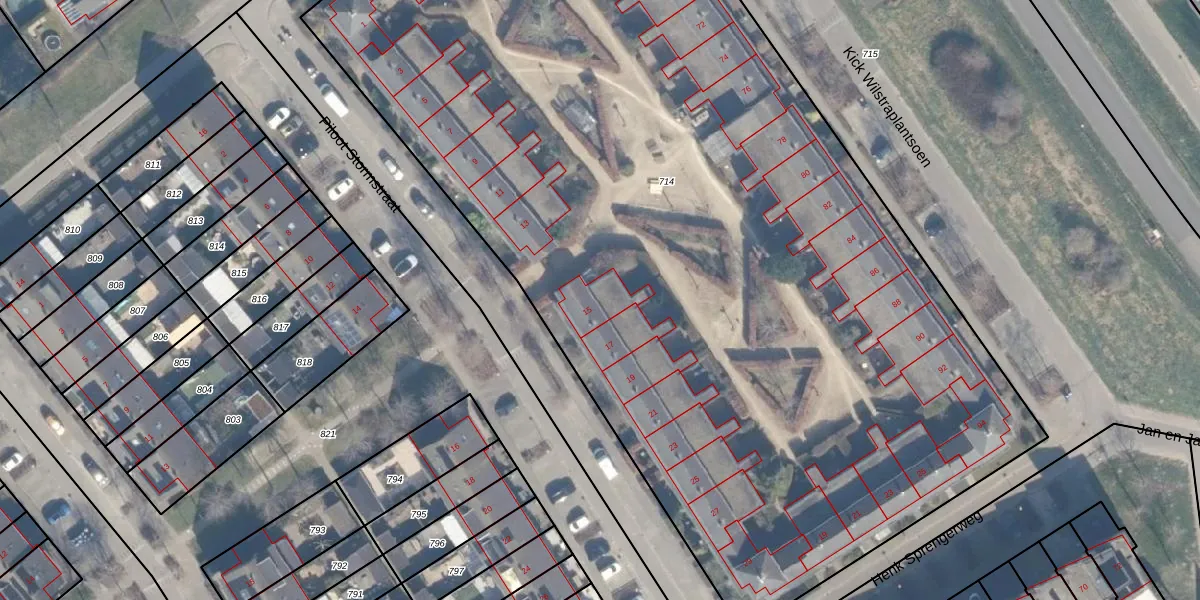 Het perceel waarop Piloot Stormstraat 15 staat heeft een oppervlakte van 7694 m². Dit is een zeer groot perceel. De perceeloppervlakte wordt geregistreerd door het Kadaster. Gedetailleerde informatie over de maten van dit perceel kunt u vinden in het rapport Kadastrale kaart met maatvoering van Piloot Stormstraat 15.