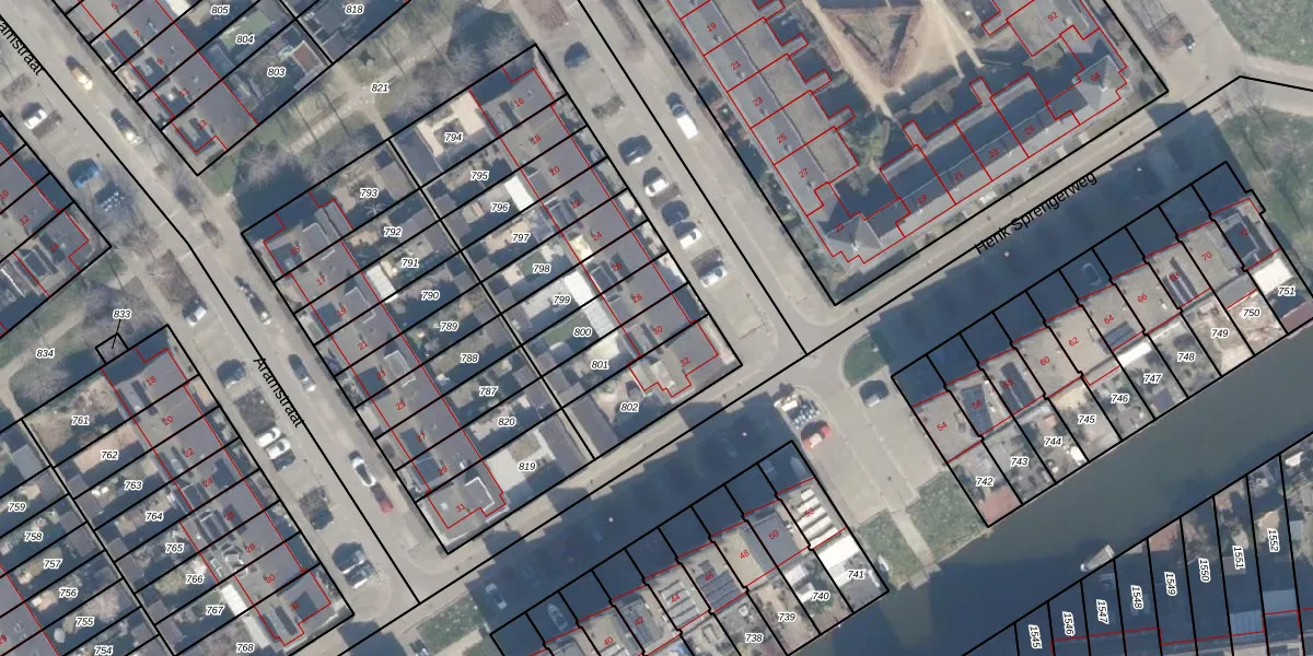 Het perceel waarop het adres ligt is AMR04-R-801. De afkorting 'AMR04' staat voor kadastrale gemeente Almere. Het perceel is 152 m² groot. Dat is kleiner dan de gemiddelde perceeloppervlakte in Almere, dat op 3328,15 m² ligt. De grootste perceeloppervlakte in de kadastrale gemeente is 32,12 km². De kleinste oppervlakte bedraagt 0 m². Op het perceel bevinden zich geen andere adressen. De huidige grenzen van het perceel zijn digitaal in de Basisregistratie Kadaster (BRK) geregistreerd op 12-11-2007.