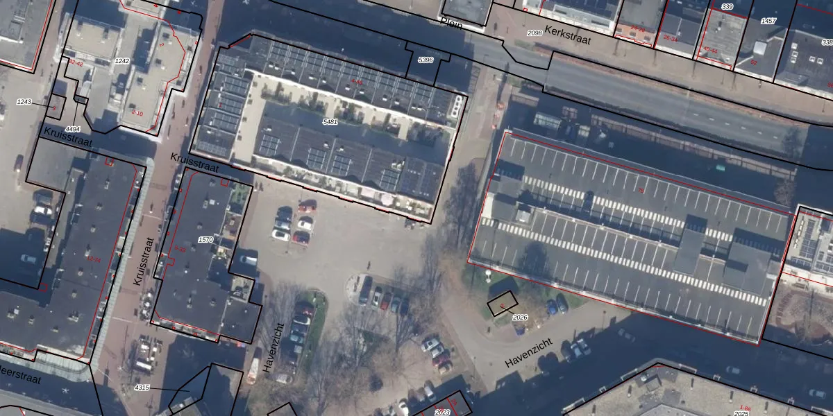 Het perceel waarop Plein 4 staat heeft een oppervlakte van 1910 m². Dit is een zeer groot perceel. De perceeloppervlakte wordt geregistreerd door het Kadaster. Gedetailleerde informatie over de maten van dit perceel kunt u vinden in het rapport Kadastrale kaart met maatvoering van Plein 4.