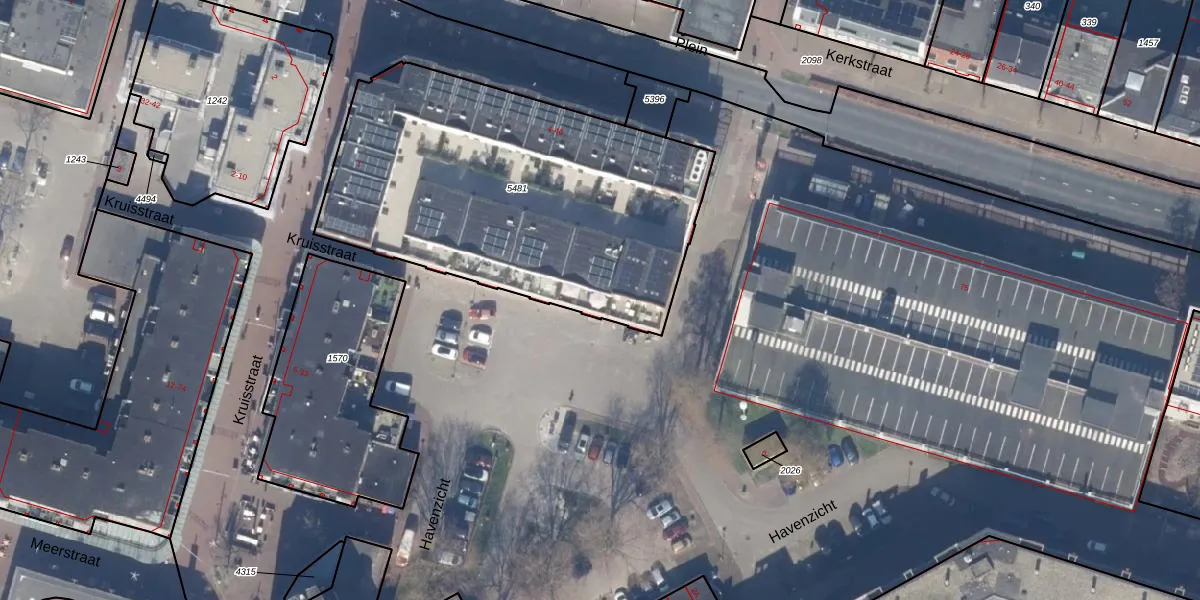 Het perceel waarop Plein 6 staat heeft een oppervlakte van 1910 m². Dit is een zeer groot perceel. De perceeloppervlakte wordt geregistreerd door het Kadaster. Gedetailleerde informatie over de maten van dit perceel kunt u vinden in het rapport Kadastrale kaart met maatvoering van Plein 6.