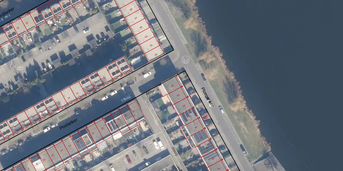 Het perceel waarop Ploeganker 57 staat heeft een oppervlakte van 1,0 ha. Dit is een zeer groot perceel. De perceeloppervlakte wordt geregistreerd door het Kadaster. Gedetailleerde informatie over de maten van dit perceel kunt u vinden in het rapport Kadastrale kaart met maatvoering van Ploeganker 57.