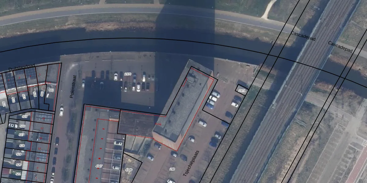 Het perceel waarop Polenstraat 104 staat heeft een oppervlakte van 3577 m². Dit is een zeer groot perceel. De perceeloppervlakte wordt geregistreerd door het Kadaster. Gedetailleerde informatie over de maten van dit perceel kunt u vinden in het rapport Kadastrale kaart met maatvoering van Polenstraat 104.