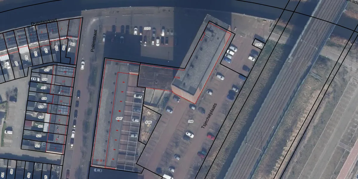 Het perceel waarop Polenstraat 114 staat heeft een oppervlakte van 3577 m². Dit is een zeer groot perceel. De perceeloppervlakte wordt geregistreerd door het Kadaster. Gedetailleerde informatie over de maten van dit perceel kunt u vinden in het rapport Kadastrale kaart met maatvoering van Polenstraat 114.