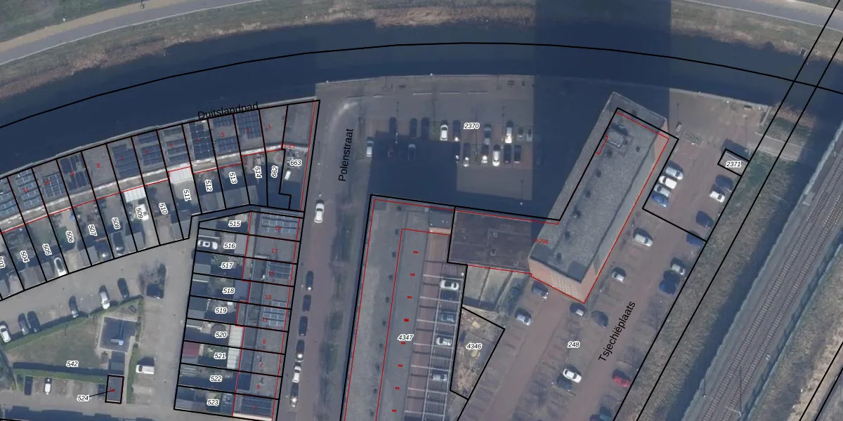 Het perceel waarop Polenstraat 16 staat heeft een oppervlakte van 1511 m². Dit is een zeer groot perceel. De perceeloppervlakte wordt geregistreerd door het Kadaster. Gedetailleerde informatie over de maten van dit perceel kunt u vinden in het rapport Kadastrale kaart met maatvoering van Polenstraat 16.