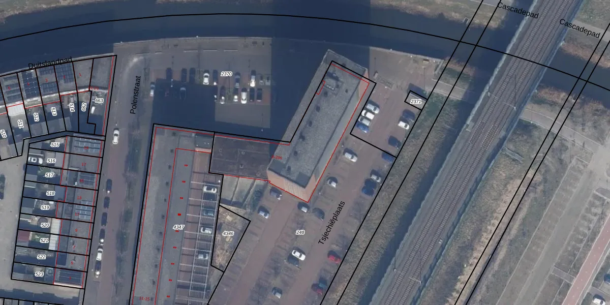 Het perceel waarop Polenstraat 166 staat heeft een oppervlakte van 3577 m². Dit is een zeer groot perceel. De perceeloppervlakte wordt geregistreerd door het Kadaster. Gedetailleerde informatie over de maten van dit perceel kunt u vinden in het rapport Kadastrale kaart met maatvoering van Polenstraat 166.