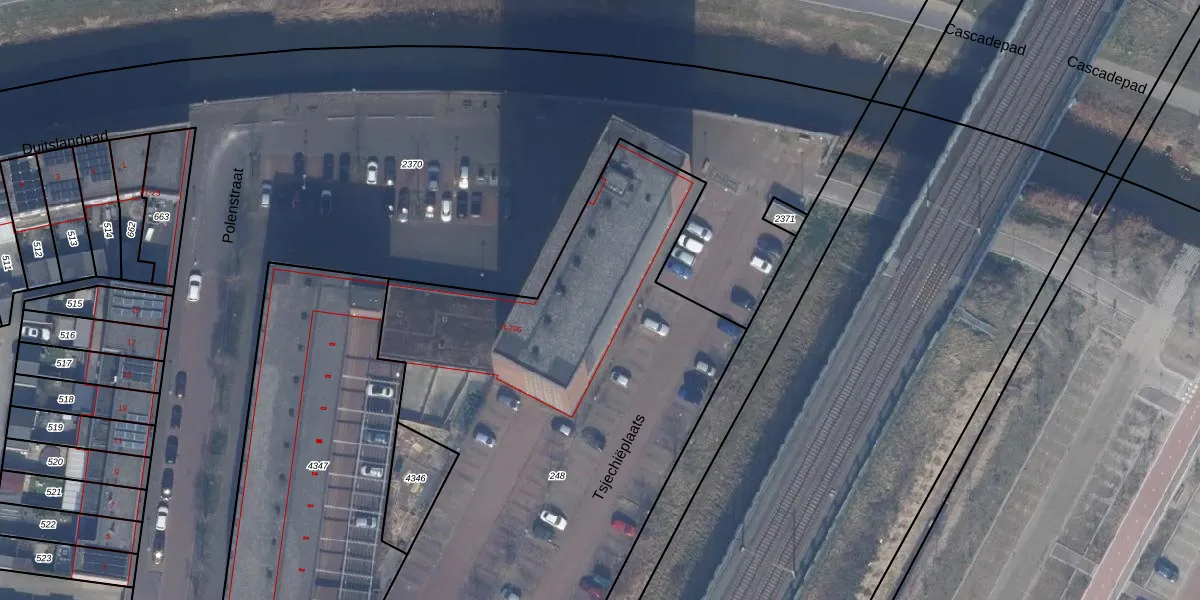 Het perceel waarop Polenstraat 220 staat heeft een oppervlakte van 3577 m². Dit is een zeer groot perceel. De perceeloppervlakte wordt geregistreerd door het Kadaster. Gedetailleerde informatie over de maten van dit perceel kunt u vinden in het rapport Kadastrale kaart met maatvoering van Polenstraat 220.