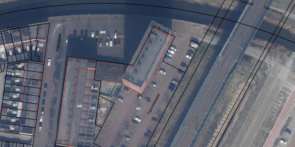 Het perceel waarop Polenstraat 250 staat heeft een oppervlakte van 3577 m². Dit is een zeer groot perceel. De perceeloppervlakte wordt geregistreerd door het Kadaster. Gedetailleerde informatie over de maten van dit perceel kunt u vinden in het rapport Kadastrale kaart met maatvoering van Polenstraat 250.
