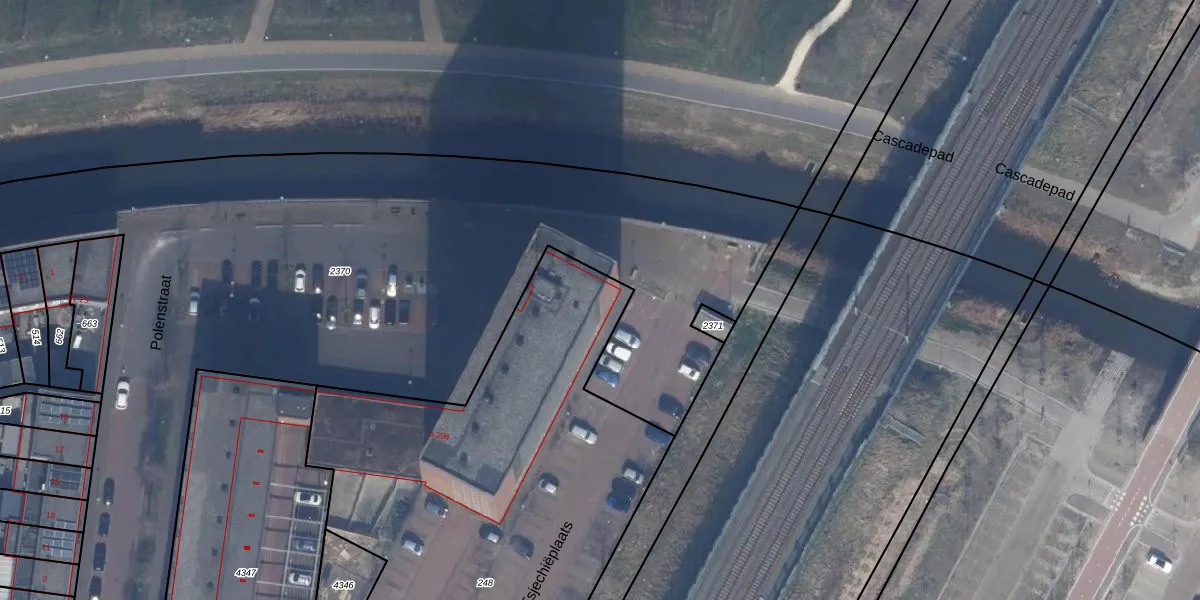 Het perceel waarop Polenstraat 256 staat heeft een oppervlakte van 3577 m². Dit is een zeer groot perceel. De perceeloppervlakte wordt geregistreerd door het Kadaster. Gedetailleerde informatie over de maten van dit perceel kunt u vinden in het rapport Kadastrale kaart met maatvoering van Polenstraat 256.