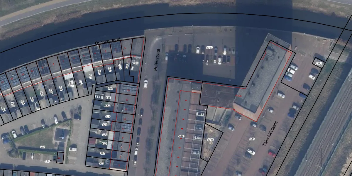 Het perceel waarop Polenstraat 40 staat heeft een oppervlakte van 1511 m². Dit is een zeer groot perceel. De perceeloppervlakte wordt geregistreerd door het Kadaster. Gedetailleerde informatie over de maten van dit perceel kunt u vinden in het rapport Kadastrale kaart met maatvoering van Polenstraat 40.