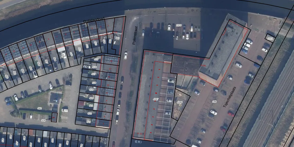 Het perceel waarop Polenstraat 66 staat heeft een oppervlakte van 1511 m². Dit is een zeer groot perceel. De perceeloppervlakte wordt geregistreerd door het Kadaster. Gedetailleerde informatie over de maten van dit perceel kunt u vinden in het rapport Kadastrale kaart met maatvoering van Polenstraat 66.