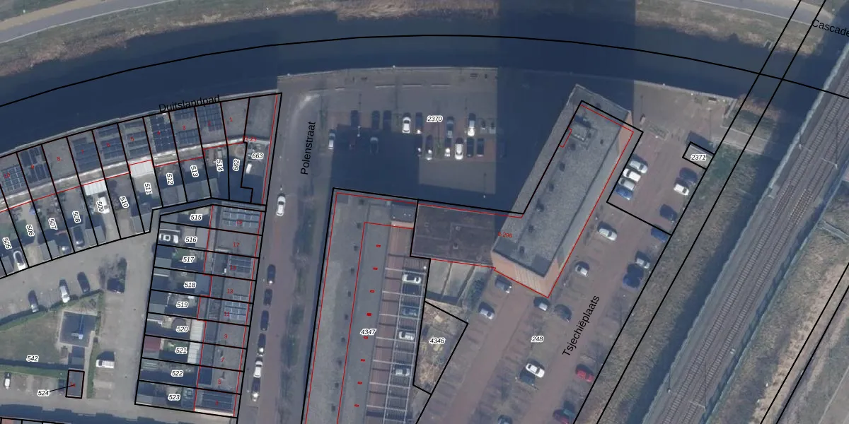 Het perceel waarop Polenstraat 84-A staat heeft een oppervlakte van 3577 m². Dit is een zeer groot perceel. De perceeloppervlakte wordt geregistreerd door het Kadaster. Gedetailleerde informatie over de maten van dit perceel kunt u vinden in het rapport Kadastrale kaart met maatvoering van Polenstraat 84-A.