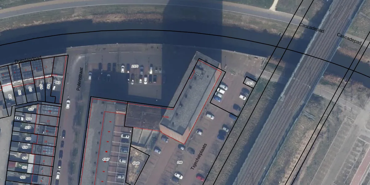 Het perceel waarop Polenstraat 92 staat heeft een oppervlakte van 3577 m². Dit is een zeer groot perceel. De perceeloppervlakte wordt geregistreerd door het Kadaster. Gedetailleerde informatie over de maten van dit perceel kunt u vinden in het rapport Kadastrale kaart met maatvoering van Polenstraat 92.