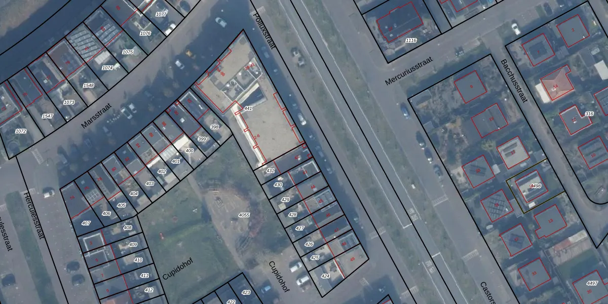 Het perceel waarop Polluxstraat 42 staat heeft een oppervlakte van 106 m². Dit is een middelgroot perceel. De perceeloppervlakte wordt geregistreerd door het Kadaster. Gedetailleerde informatie over de maten van dit perceel kunt u vinden in het rapport Kadastrale kaart met maatvoering van Polluxstraat 42.