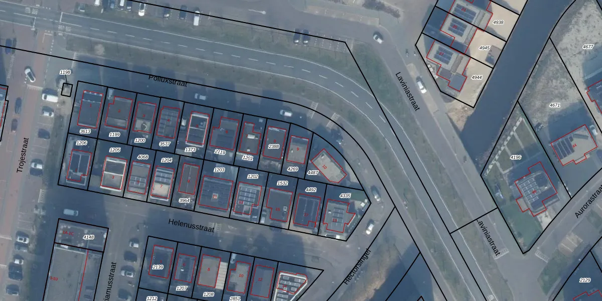Het perceel waarop Polluxstraat 9 staat heeft een oppervlakte van 135 m². Dit is een middelgroot perceel. De perceeloppervlakte wordt geregistreerd door het Kadaster. Gedetailleerde informatie over de maten van dit perceel kunt u vinden in het rapport Kadastrale kaart met maatvoering van Polluxstraat 9.