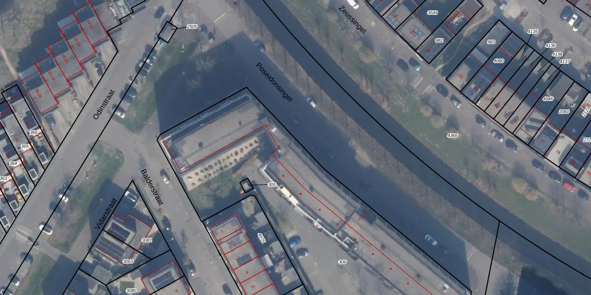 Het perceel waarop Poseidonsingel 110 staat heeft een oppervlakte van 4264 m². Dit is een zeer groot perceel. De perceeloppervlakte wordt geregistreerd door het Kadaster. Gedetailleerde informatie over de maten van dit perceel kunt u vinden in het rapport Kadastrale kaart met maatvoering van Poseidonsingel 110.
