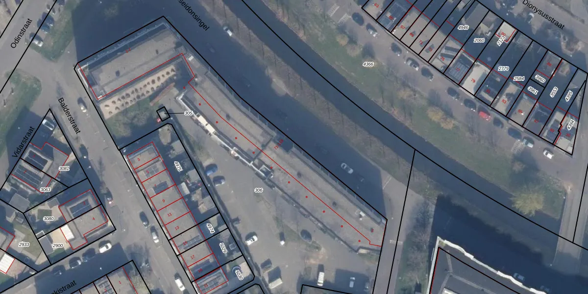 Het perceel waarop Poseidonsingel 116 staat heeft een oppervlakte van 4264 m². Dit is een zeer groot perceel. De perceeloppervlakte wordt geregistreerd door het Kadaster. Gedetailleerde informatie over de maten van dit perceel kunt u vinden in het rapport Kadastrale kaart met maatvoering van Poseidonsingel 116.