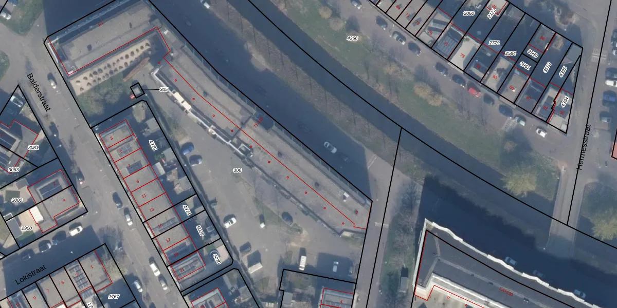 Het adres is gelegen op perceel 306 in de sectie W en de kadastrale gemeente Almere. De kadastrale aanduiding is aldus AMR04-W-306. Het perceel is met 4264 m² relatief groot. Het gemiddelde ligt in de kadastrale gemeente Almere op 3329,85 m². Het grootste perceel in de kadastrale gemeente is 32,12 km². Het kleinste perceel heeft een oppervlakte van 0 m². Op het perceel liggen in totaal 54 adressen. De laatste wijziging in het de Basisregistratie Kadaster (BRK) was op 21-04-2022.