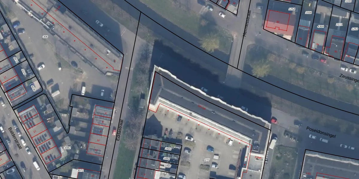 Het perceel waarop Poseidonsingel 122 staat heeft een oppervlakte van 3827 m². Dit is een zeer groot perceel. De perceeloppervlakte wordt geregistreerd door het Kadaster. Gedetailleerde informatie over de maten van dit perceel kunt u vinden in het rapport Kadastrale kaart met maatvoering van Poseidonsingel 122.