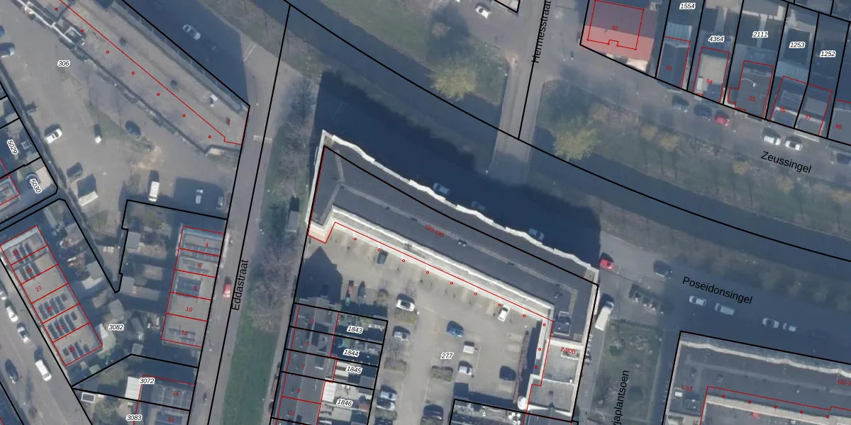 Het perceel waarop Poseidonsingel 124 staat heeft een oppervlakte van 3827 m². Dit is een zeer groot perceel. De perceeloppervlakte wordt geregistreerd door het Kadaster. Gedetailleerde informatie over de maten van dit perceel kunt u vinden in het rapport Kadastrale kaart met maatvoering van Poseidonsingel 124.