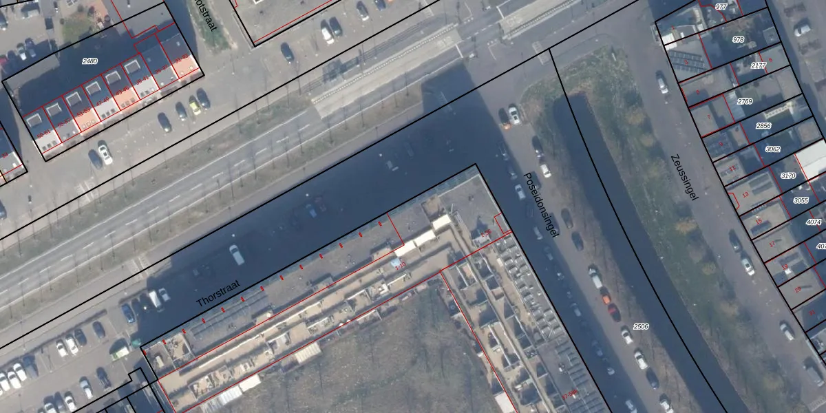 Het perceel waarop Poseidonsingel 15 staat heeft een oppervlakte van 1,5 ha. Dit is een zeer groot perceel. De perceeloppervlakte wordt geregistreerd door het Kadaster. Gedetailleerde informatie over de maten van dit perceel kunt u vinden in het rapport Kadastrale kaart met maatvoering van Poseidonsingel 15.