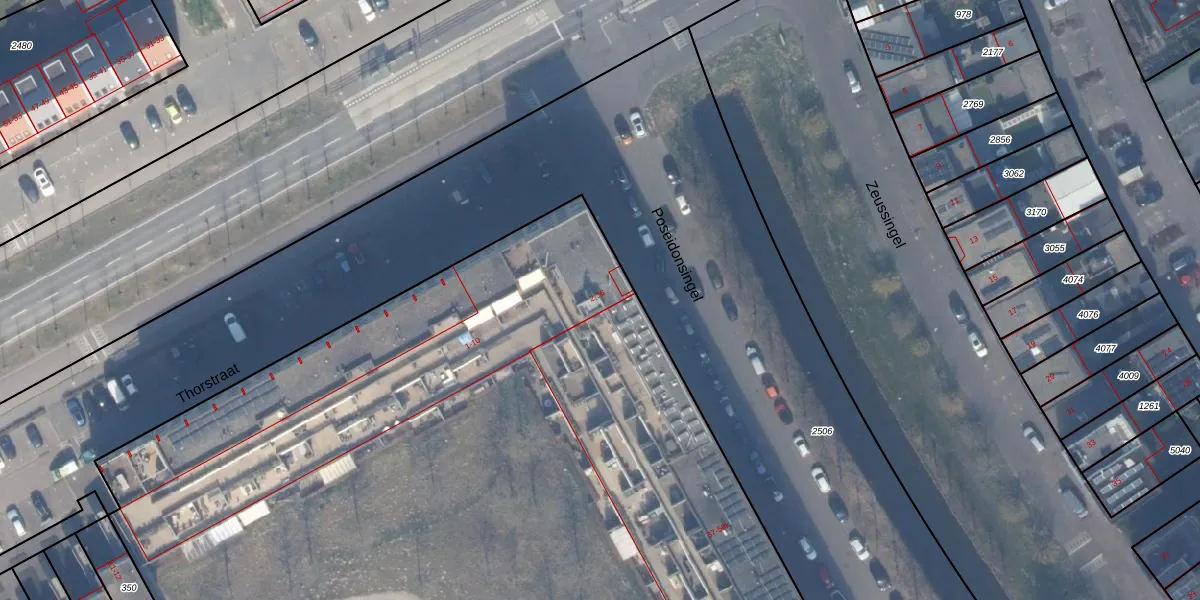Het perceel waarop Poseidonsingel 19 staat heeft een oppervlakte van 1,5 ha. Dit is een zeer groot perceel. De perceeloppervlakte wordt geregistreerd door het Kadaster. Gedetailleerde informatie over de maten van dit perceel kunt u vinden in het rapport Kadastrale kaart met maatvoering van Poseidonsingel 19.