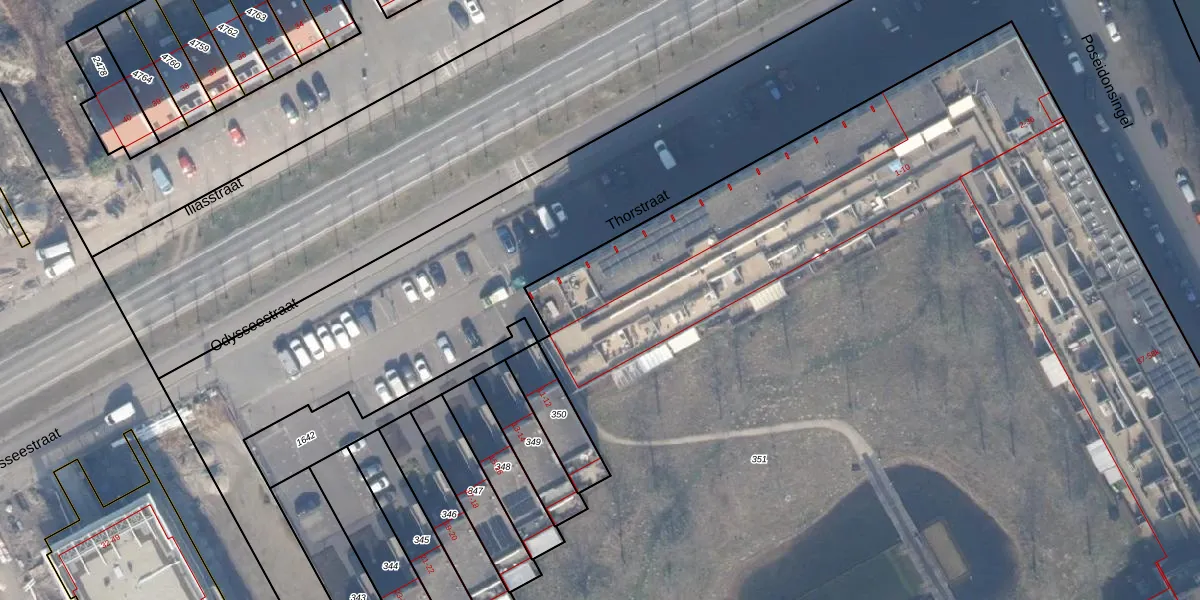 Het perceel waarop Poseidonsingel 20 staat heeft een oppervlakte van 1,5 ha. Dit is een zeer groot perceel. De perceeloppervlakte wordt geregistreerd door het Kadaster. Gedetailleerde informatie over de maten van dit perceel kunt u vinden in het rapport Kadastrale kaart met maatvoering van Poseidonsingel 20.